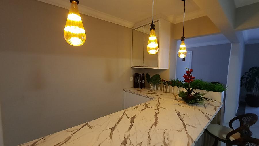 São 3 dormitórios (1 suíte), living de dois ambientes com a cozinha integrada, uma espaçosa área de serviço com armário de dispensa e uma enorme e confortável sacada com churrasqueira a carvão e vista para o mar. Também conta com 1 vaga privativa de fácil manobra para carro grande.
