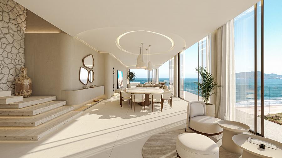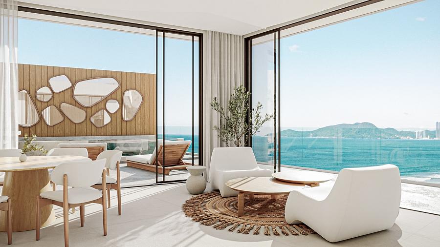 O verde da mata e o azul do mar tão próximos trazem uma experiência sensorial completa, enquanto o projeto arquitetônico impecável valoriza o uso da vegetação e da paisagem local em cada detalhe.