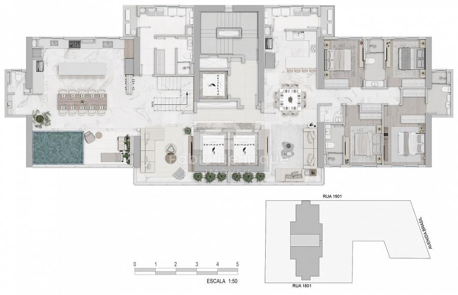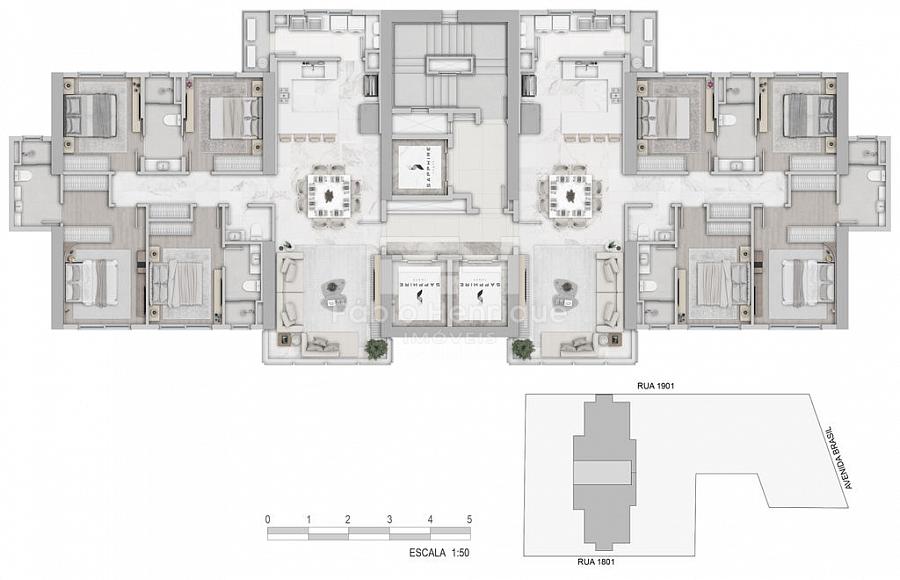 Lançamento da construtora FG, o Sapphire é uma verdadeira "jóia" que será construído na Barra Norte de Balneário Camboriú, em uma localização mais do que privilegiada na Av Brasil, esquina com a rua 1901 e a poucos metros da praia. Uma edificação imponente e que mudará o cenário da região.